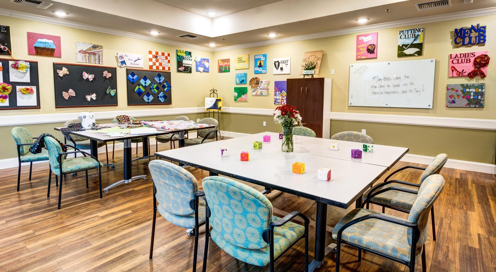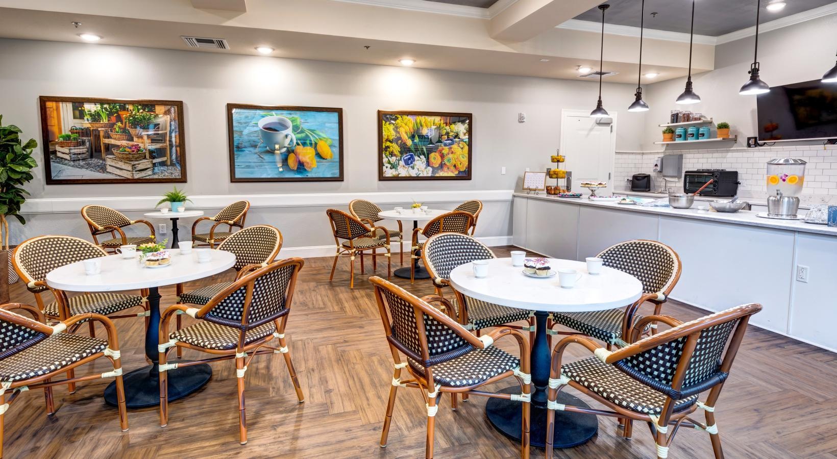 • a room with tables and chairs