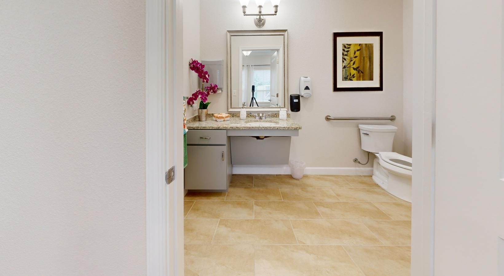 • a bathroom with a sink toilet and mirror
