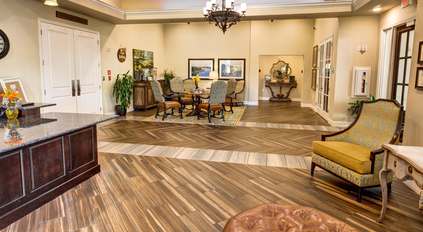 • a room with a large floor and chairs