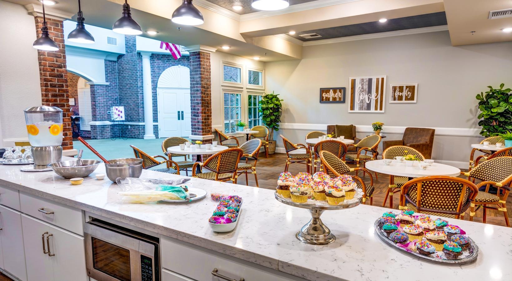 • a kitchen with a marble island